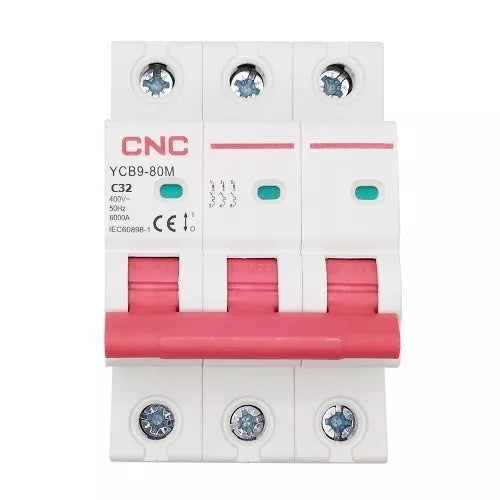 Techniniai duomenys: Kontaktų skaičius: 3. Nominali srovė (In): 32 A. Klasė: C. Nominali įtampa (Ue): AC 400 V. Izoliacijos įtampa (Ui): 500 V. Dažnis: 50/60 Hz. Nominali trumpo atjungimo geba (Icu): 6000 A. Nominali impulsų atsparumo įtampa (Uimp): 6000 V. Mechaninis tarnavimo laikas: 20000 ciklų. Elektrinis tarnavimo laikas: 8000 ciklų. Saugos klasė: IP20. Prijungimo tipas: kabelis / pin-tipo šyna. Laido / šynos skerspjūvio plotas: iki 25mm² / 18-3 AWG. Prijungimas: iš viršaus ir iš apačios. Instaliavimas: ant DIN bėgio EN 60715 (35mm). Darbinė temperatūra: -5°C~+40°C (kai vidutinė temperatūra