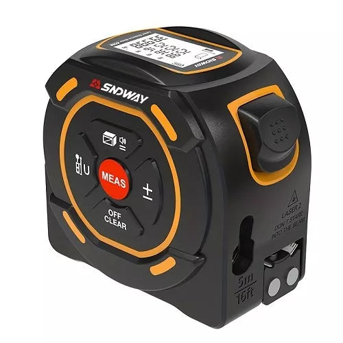2-in-1 lazerinė atstumo matavimo juosta gali išmatuoti ilgį, aukštį, plotį, plotą ir tūrį, o šis modelis turi įvairių papildomų matavimo funkcijų.