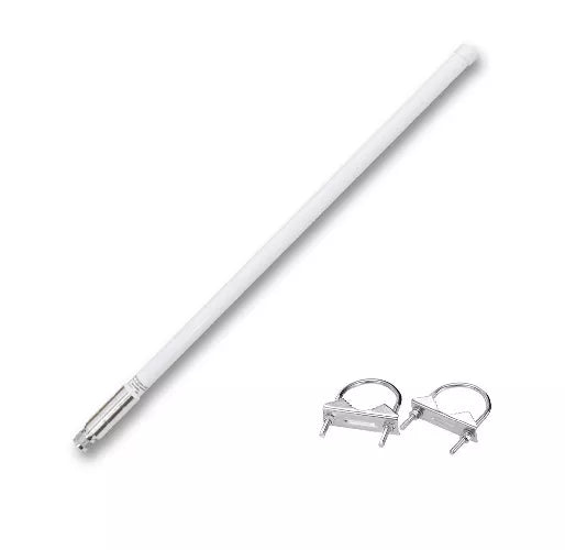 Techninė specifikacija: Dažnis: 868 MHz. Stiprinimas: 10 dB. Jungtis: N-male. Antenos ilgis: apie 130 cm. Tvirtinimas: U formos laikikliai x2 (pridedami). Laikiklio diametras: iki 51 mm. Medžiaga: stiklo pluoštas (Fiberglass). Vertikali poliarizacija. Spalva: balta.